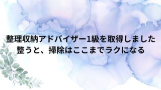 このたび、整理収納アドバイザー1級を取得しました。整理収納を学ぶ前の私は、・片付けてもすぐ散らかる・掃除が後回しになる・いつも時間に追われているそんな毎日を過ごしていました。どこかで、「私は片付けが得意ではないのかもしれない」そう思っていた...